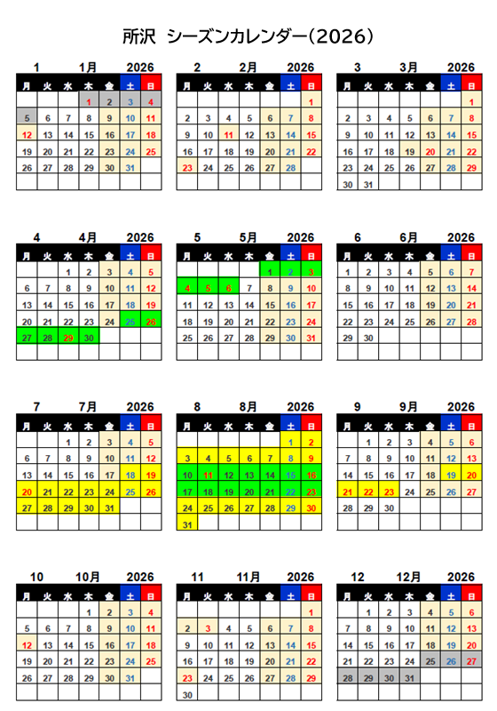 | 所沢営業所 | レギュラーシーズン ・1月1日~6月30日 ・9月1日~12月31日 |