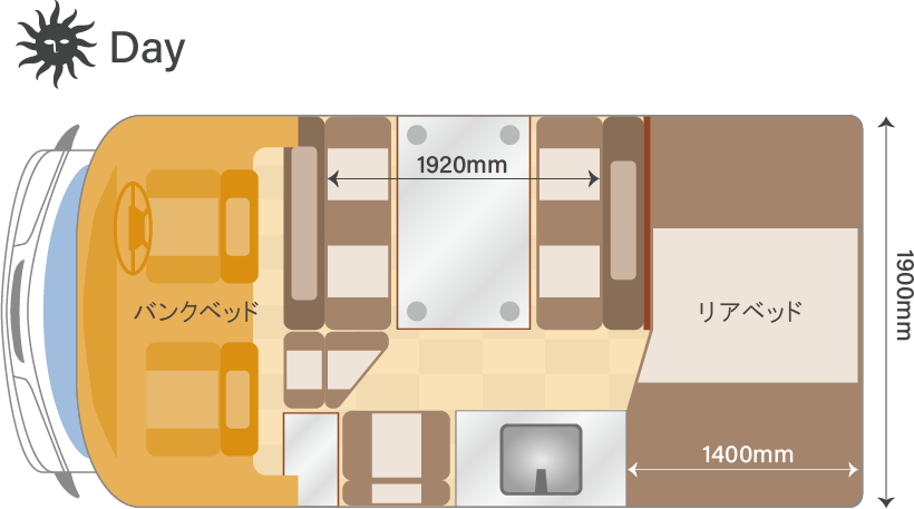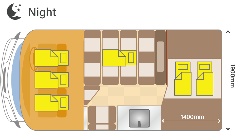 | 定員 | 乗車:7名 就寝:6名 |